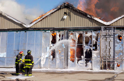 The driver of a mini-van that was struck by a pickup truck carrying a snow mobile, is placed on a stretcher after the fire department used the jaws of life to remove the van's door at the intersection of 1st street and Kirkcaldy Avenue in Brandon on Sunday March 4, 2007. The lone occupant of the mini-van, the driver, an elderly man, need to be removed with the jaws of life and was taken to hospital with unknown injuries.